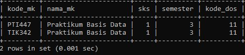 Subquery baris ganda (multiple-row) mengembalikan lebih dari satu baris data dengan menggunakan operator komparasi IN, ANY / SOME, atau ALL.