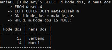 adalah query SELECT yang ada di dalam perintah SQL lain— misalnya