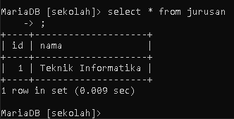 SQL (Structured Query Language) adalah bahasa yang digunakan untuk menjalankan perintah manipulasi atau mengakses data pada database. SQL biasanya disebutnya sebagai Query, apakah SQL juga bisa digunakan untuk DBMS MySQL? tentu, semua DBMS didunia menggunakan perintah yang namakan SQL, istilah ini adalah umum untuk penamaan bahasa database.